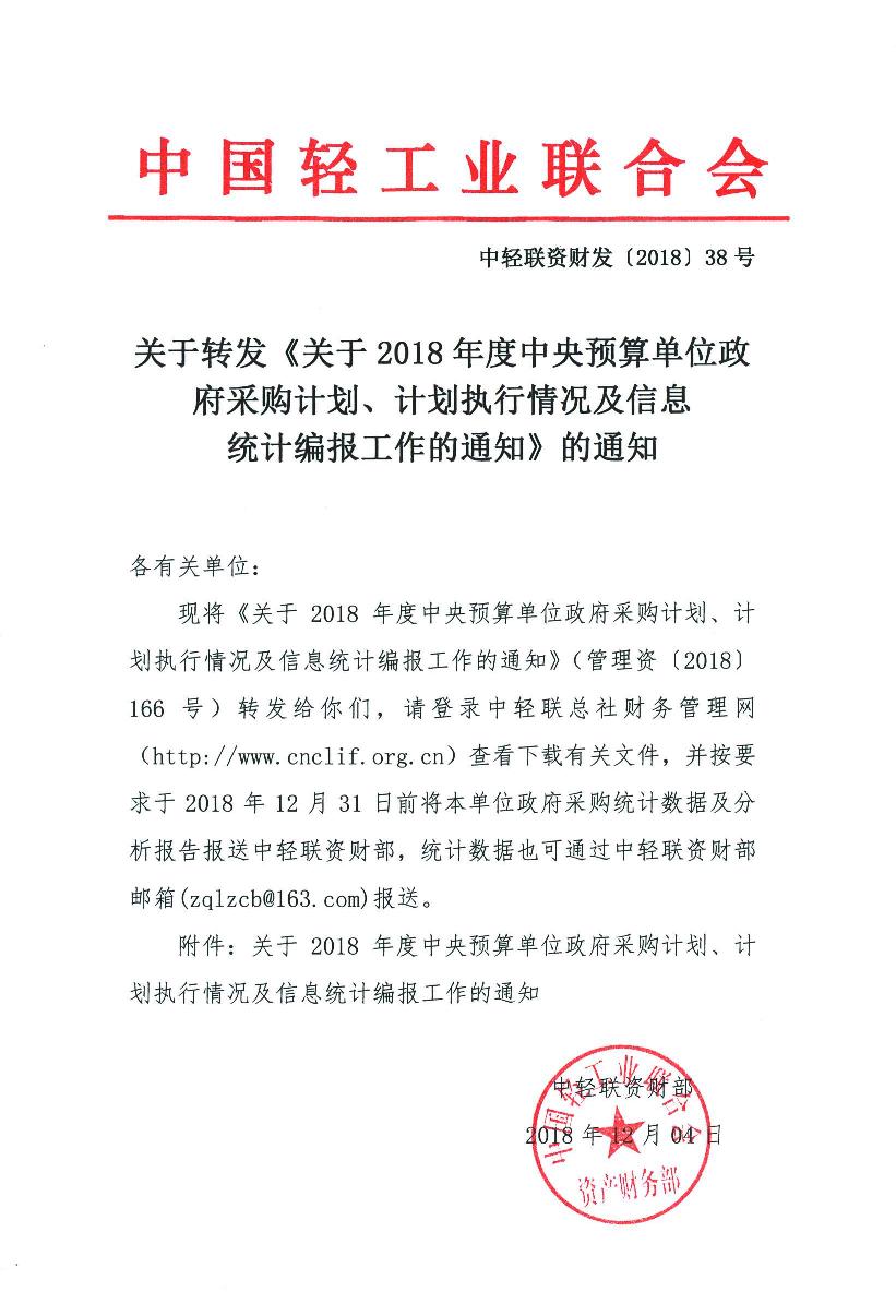 关于转发《关于2018年度中央预算单位政府采购计划、计划执行情况及信息统计编报工作的通知》的通知