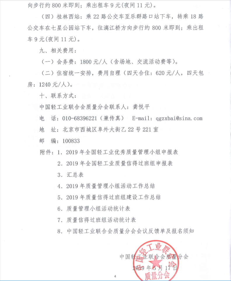 关于召开2019年全国轻工业优秀质量管理小组、质量信得过班组成果发布暨培训交流会的通知