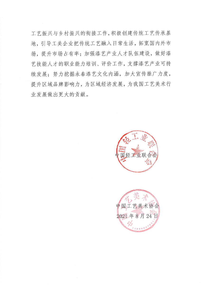 关于授予福建省永春县仙夹镇“中国漆艺之乡·仙夹”称号的通知