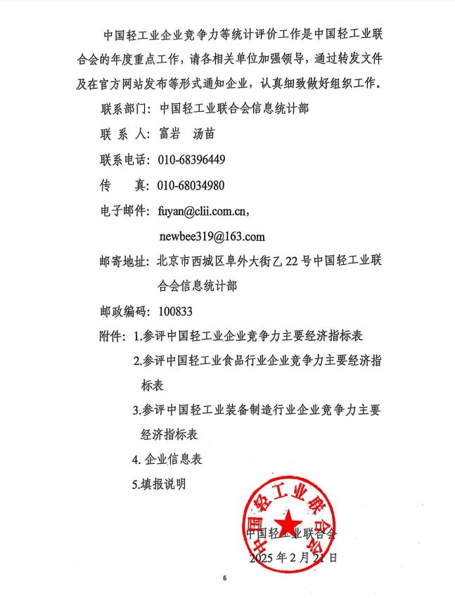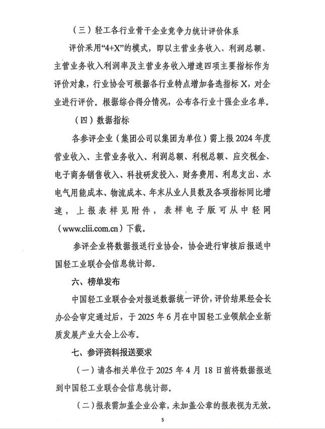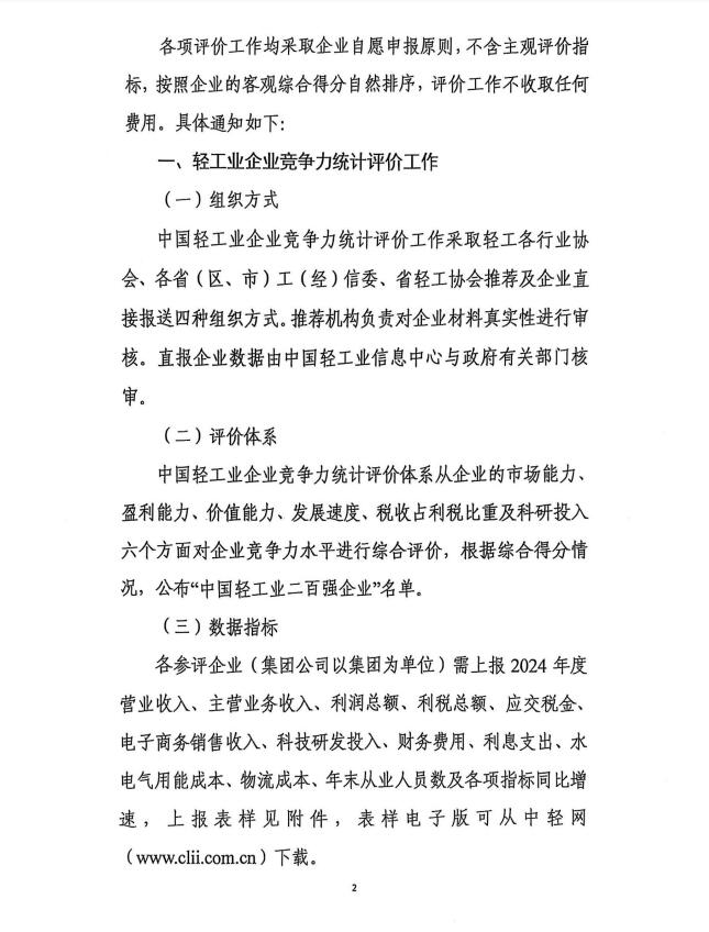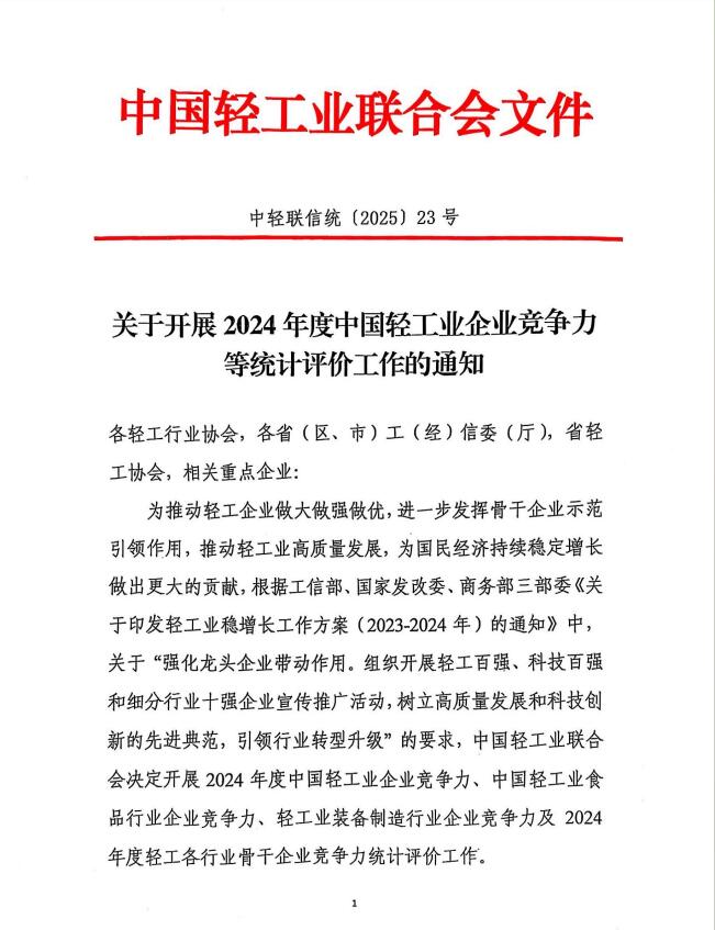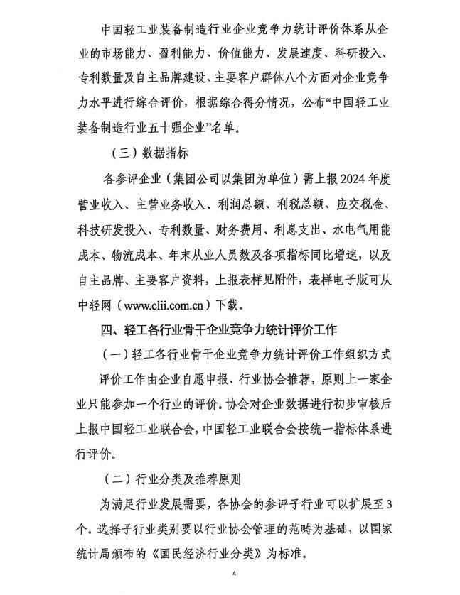 2024年度中国轻工业企业竞争力等统计评价工作的通知