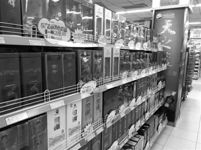 记者发现,基本上每个酒水品牌都有一到两个系列酒水在做“买就送”或五折销售等促销活动。“像这款38度白酒,原价一瓶20元,现在只要9.9元。”据某品牌酒水销售人员介绍,超市内酒水促销专柜已经摆出了一周左右的时间,不少系列白酒都给出了不低的折扣优惠。“虽然今年的中秋促销刚刚开始,但不少品牌的系列白酒已经逐渐迎来销售热潮,随着节日临近,今年的酒水销量应该还不错。”