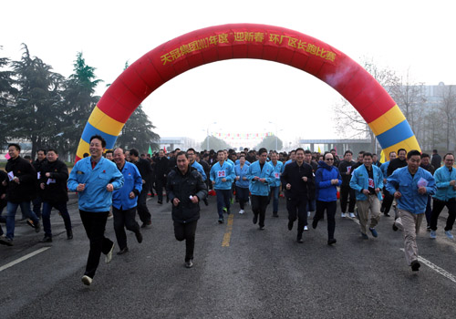 2017年2月3日(正月初七),春节后上班第一天,天冠集团公司举办2017年“迎新春”环厂区长跑比赛,全程共计4000米,200多名干部员工参加了比赛。大家你追我赶,奋勇争先,展现出了天冠人昂扬向上的精神风貌。