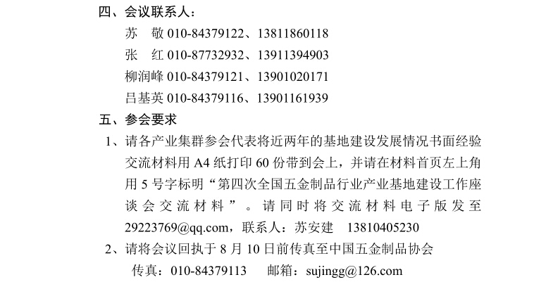 关于召开第四次全国五金制品行业产业基地建设工作座谈会的通知