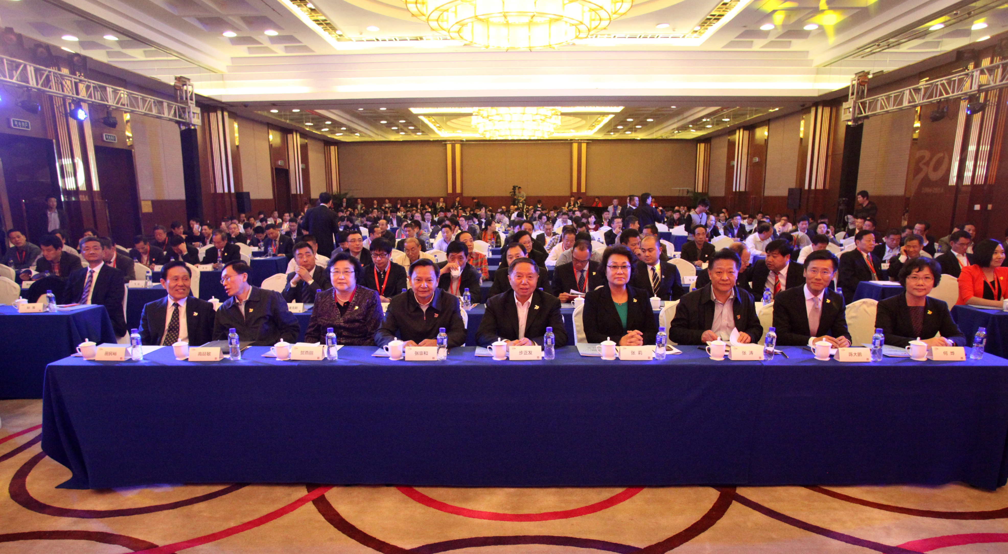 会长步正发、名誉会长陈士能、副会长陶小年、中央机构编制委员会办公室副主任张崇和、中国纺织工业联合会副会长张莉、国家发展和改革委员会产业协调司巡视员贺燕丽、国务院国有资产监督管理委员会研究局副局长张涛、国家工业和信息化部消费品工业司副司长高延敏、科技司处长盛喜军、中国服装协会常务副会长陈大鹏、专职副会长冯德虎、王茁先生、顾问蒋衡杰、中国家用纺织品行业协会名誉会长杨东辉、中国家具协会理事长朱长岭、中国皮革协会理事长苏超英、中国羽绒工业协会理事长姚小蔓、中国汽车工业协会副秘书长刘小苗、中国航空工业集团公司战略与资本部主任罗雪平、江苏省招标中心主任熊建国、北京工商大学副校长谢志华等相关领导,日本缝制机械工业会副会长安井义博、德国机械设备制造业联合会北京代表处首席代表柯蝶芬、台湾缝制机械工业同业公会理事长徐石渊、台湾台北市针车商业同业公会理事长林宝临、台湾新北市针车商业同业公会理事长林永昌,以及为缝机行业做出突出贡献的行业老领导、老员工、企业负责人、科技人员共700余人出席了庆典。