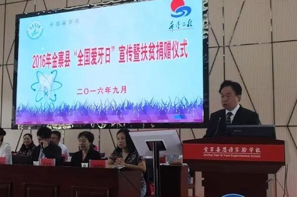 在全国第28个爱牙日里,中国口腔清洁护理用品工业协会在部分会员企业的大力支持下,在我国著名革命老区,安徽省金寨县举办了一次有声有色的公益宣传与扶贫捐赠活动。活动包括口腔健康教育、口腔疾病义诊、口腔护理产品和宣传册捐赠,以及贫困中小学生帮扶等。参加活动的有300多名中小学生和金寨县各中小学校老师代表,以及县政府相关部门负责人。金寨县县委常委、组织部长到会讲话并为协会赠送锦旗。活动取得圆满成功。