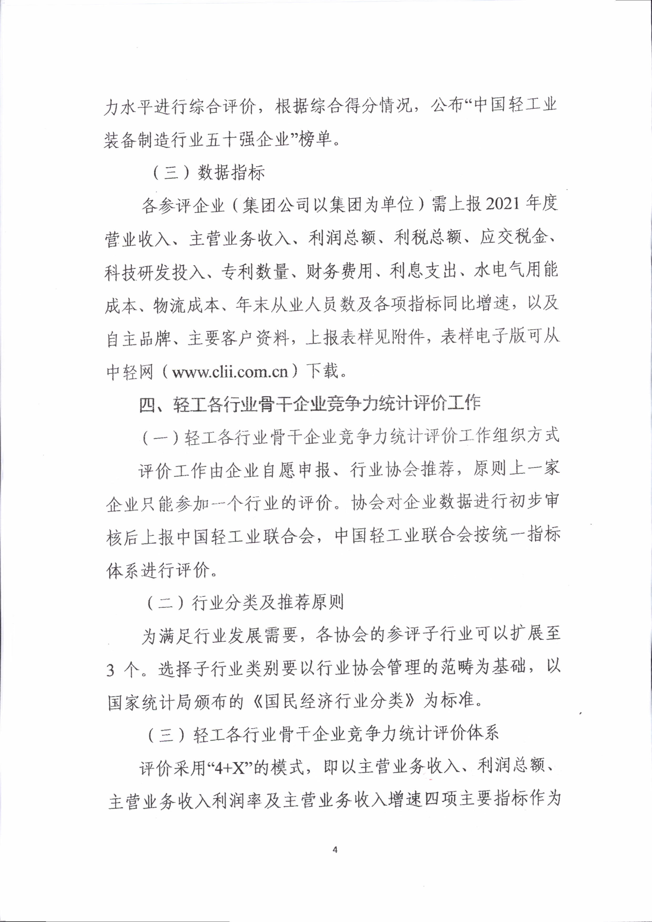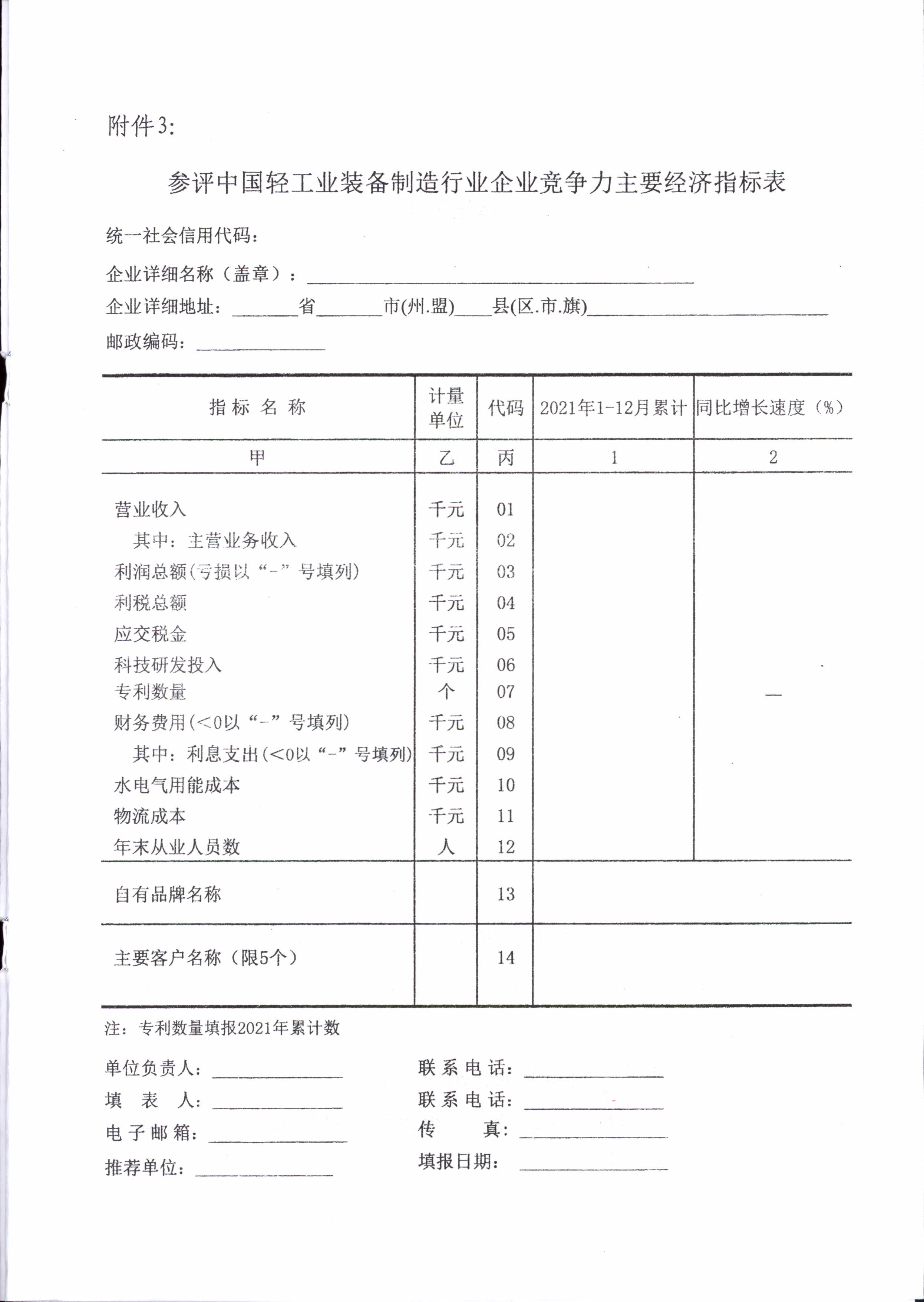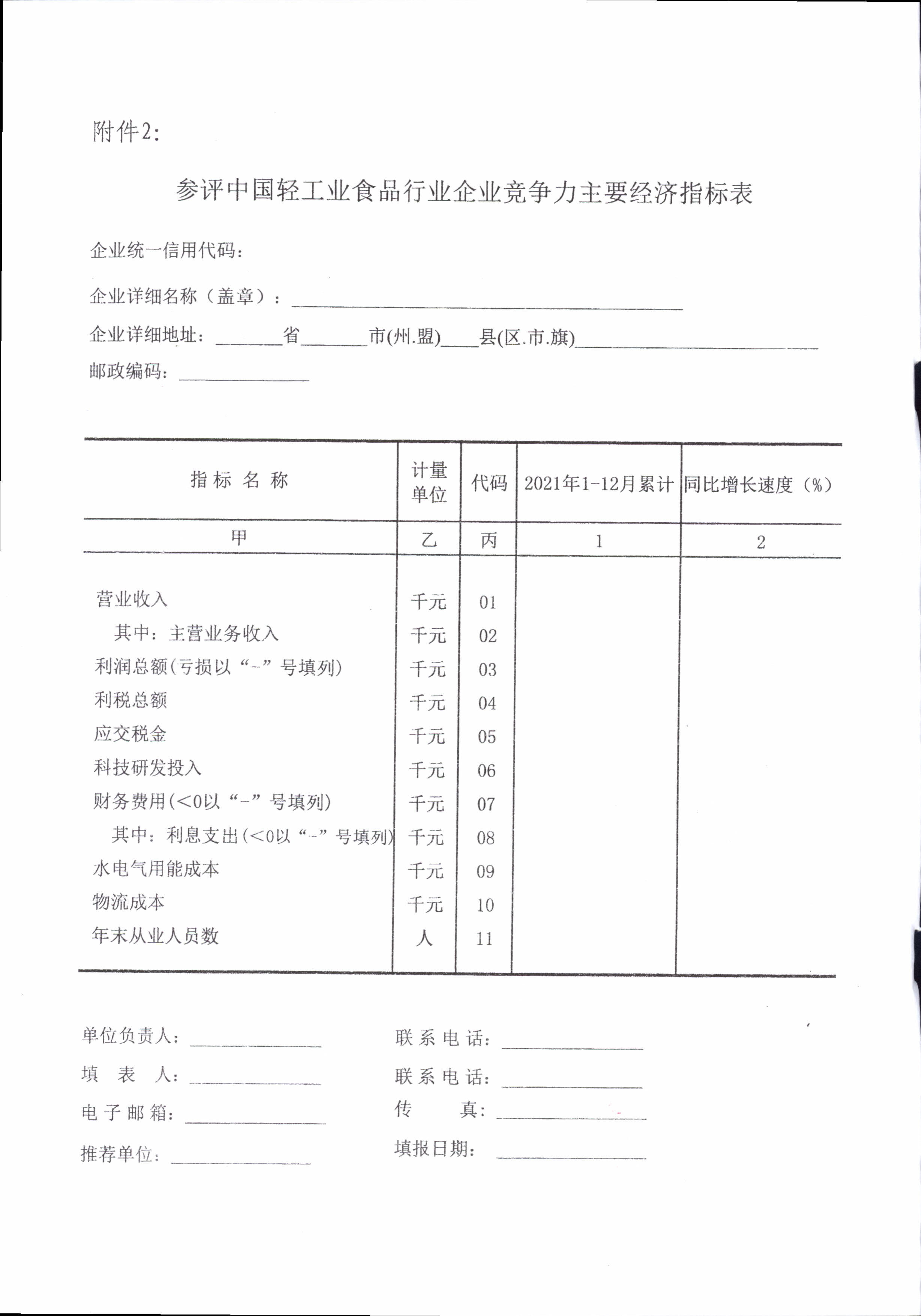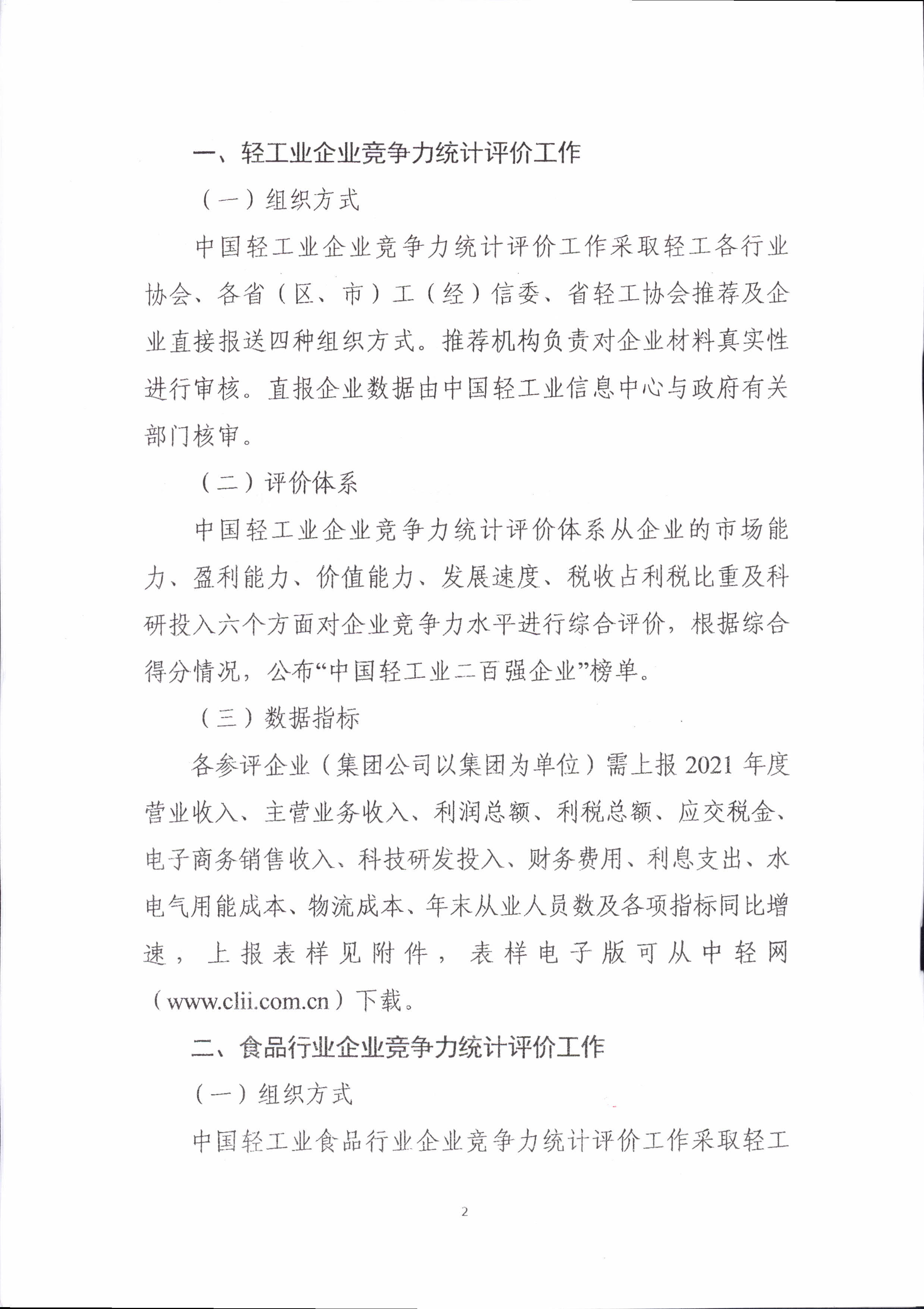 | 2、 | 关于开展2021年度中国轻工业企业竞争力等统计评价工作的通知 |