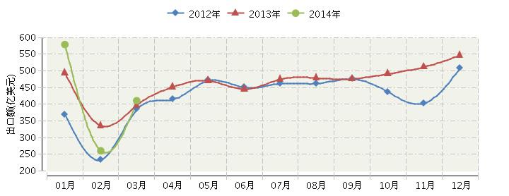 2012-2014年3月 出口额月度走势