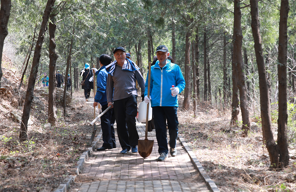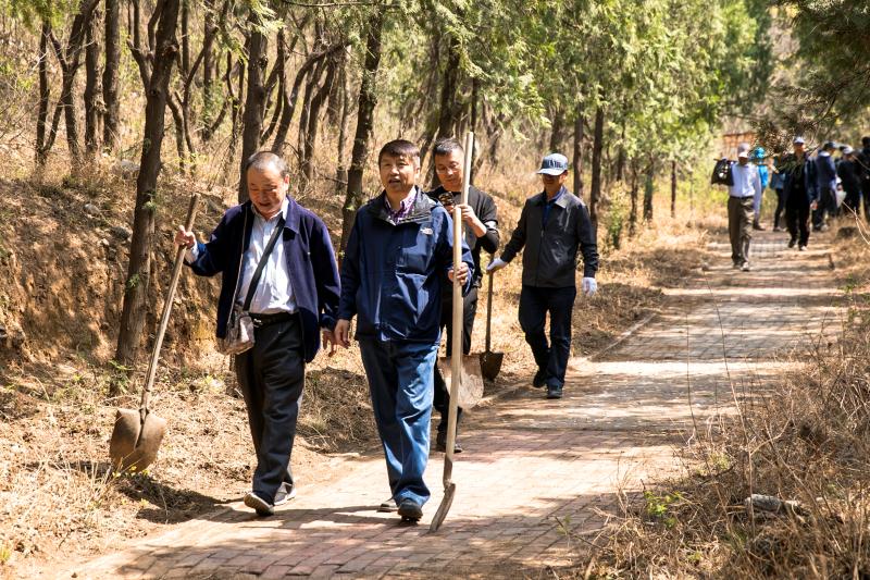 动员会后,张崇和等领导扛起铁锹、拿起镐头,和广大干部职工一起扶苗围堰、拎桶浇水,栽下了一株株车厘子、侧柏,为春日的北京增添了一片新的生机。随后,各位领导还和干部职工一起,对400余株树木进行了绿化养护。
