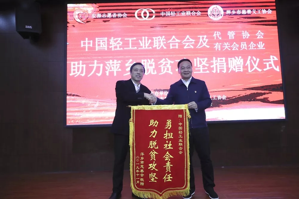 杜同和表示,萍乡是民政部定点扶贫帮扶地区,也是民政部动员全国性社会组织对口支援重点单位。多年来,中轻联党委高度重视扶贫助困工作,作为一个具有服务和一定管理职能的全国性、综合性的行业组织,始终响应上级号召,积极履行社会责任,引导并支持代管协会以及相关企业参与脱贫攻坚工作,为助力贫困地区经济社会发展,促进贫困群众增收脱贫做出了一定贡献。