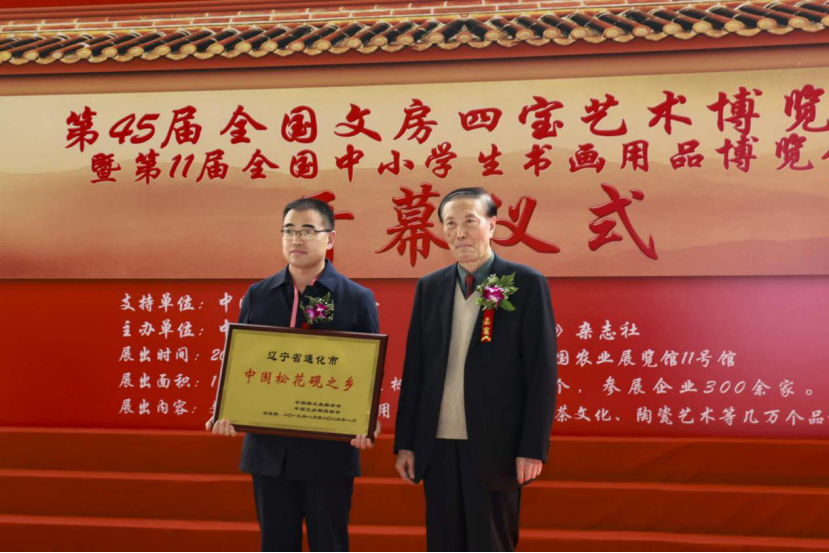 第45届全国文房四宝艺术博览会在京开幕,原全国政协副主席白立忱宣布展会开幕, 会长张崇和、原轻工业部老领导陈士能出席开幕式