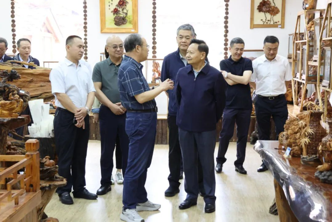 7月17日,在2023中国工艺美术大师工作会议召开前夕,张崇和会长一行来到伊春,与伊春市委书记隋洪波举行会谈,双方就推动伊春文化旅游、工艺美术等产业高质量发展进行深入交流。