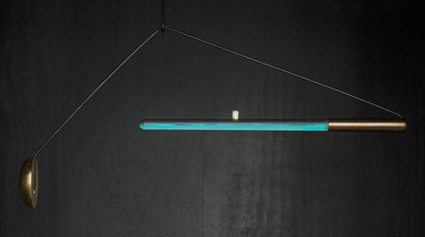 玻璃灯管悬挂在一个钢构架上,一端安装了一个巨大的重物。使用者只要轻推重物,灯管就会前后摆动,这就会使水中的细菌与氧气混合发生氧化,因此发出光。当灯管中的细菌停止摇晃时,这种怪异的蓝色光线就会消失。