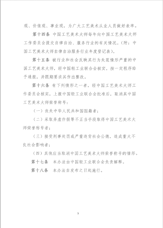 关于印发《中国工艺美术大师自律管理办法》 的通知