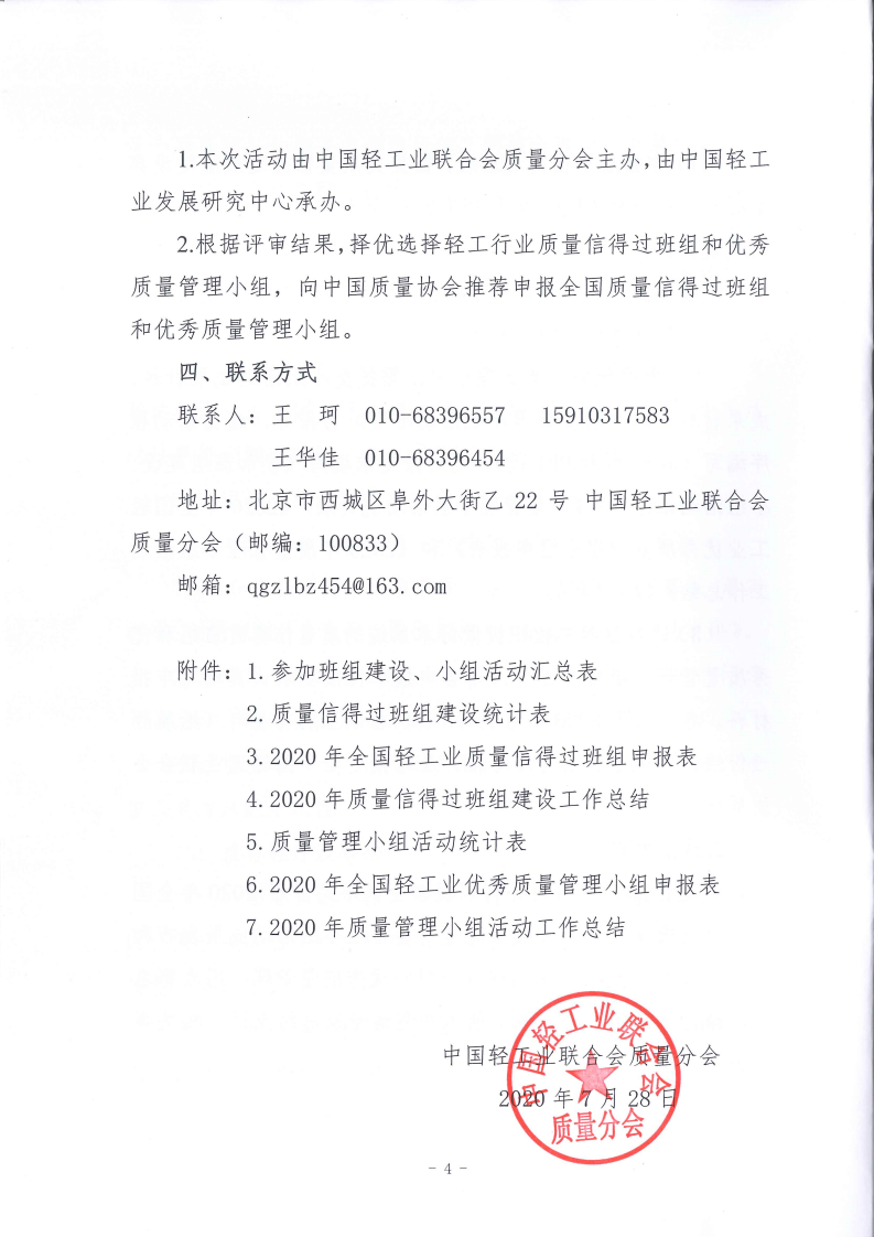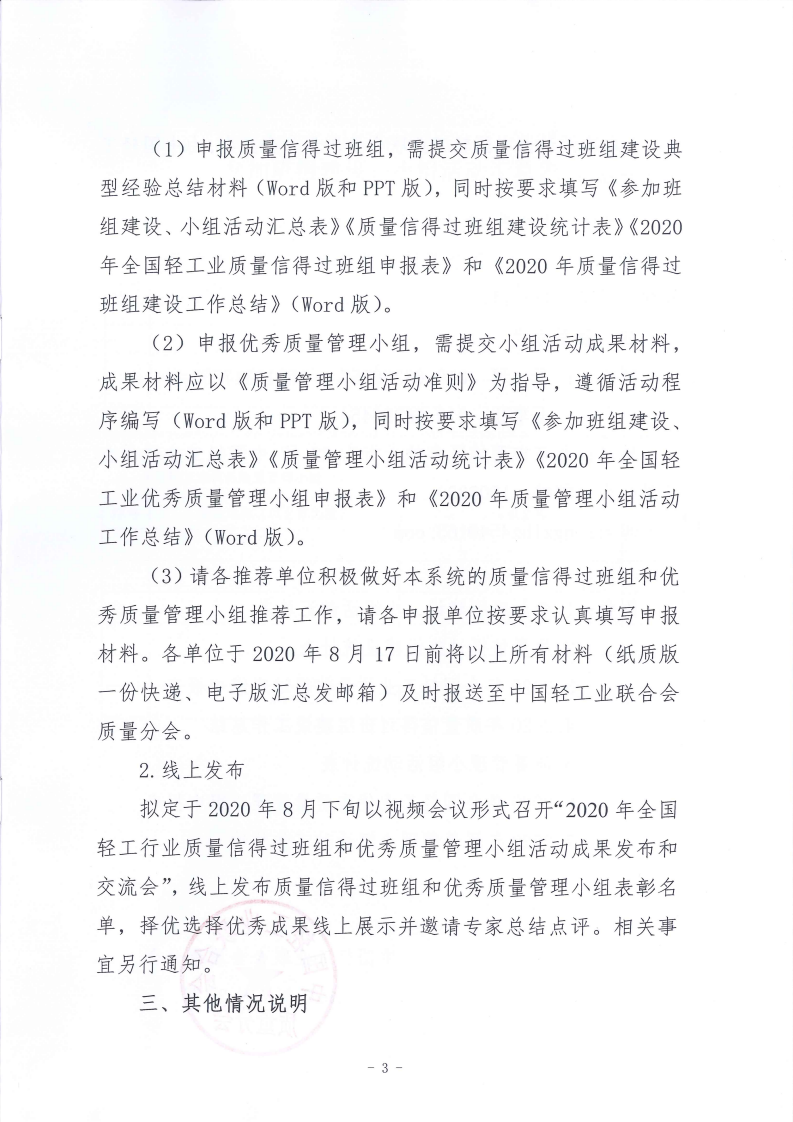关于征集2020年全国 质量信得过班组建设和优秀质量管理小组活动成果材料的通知
