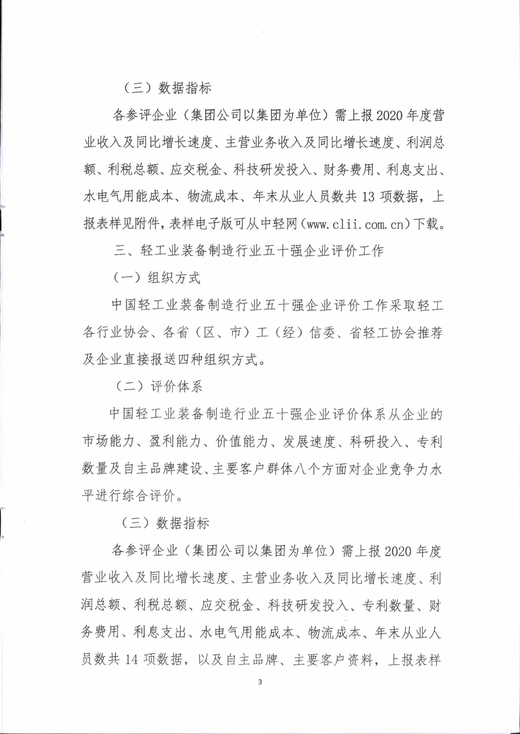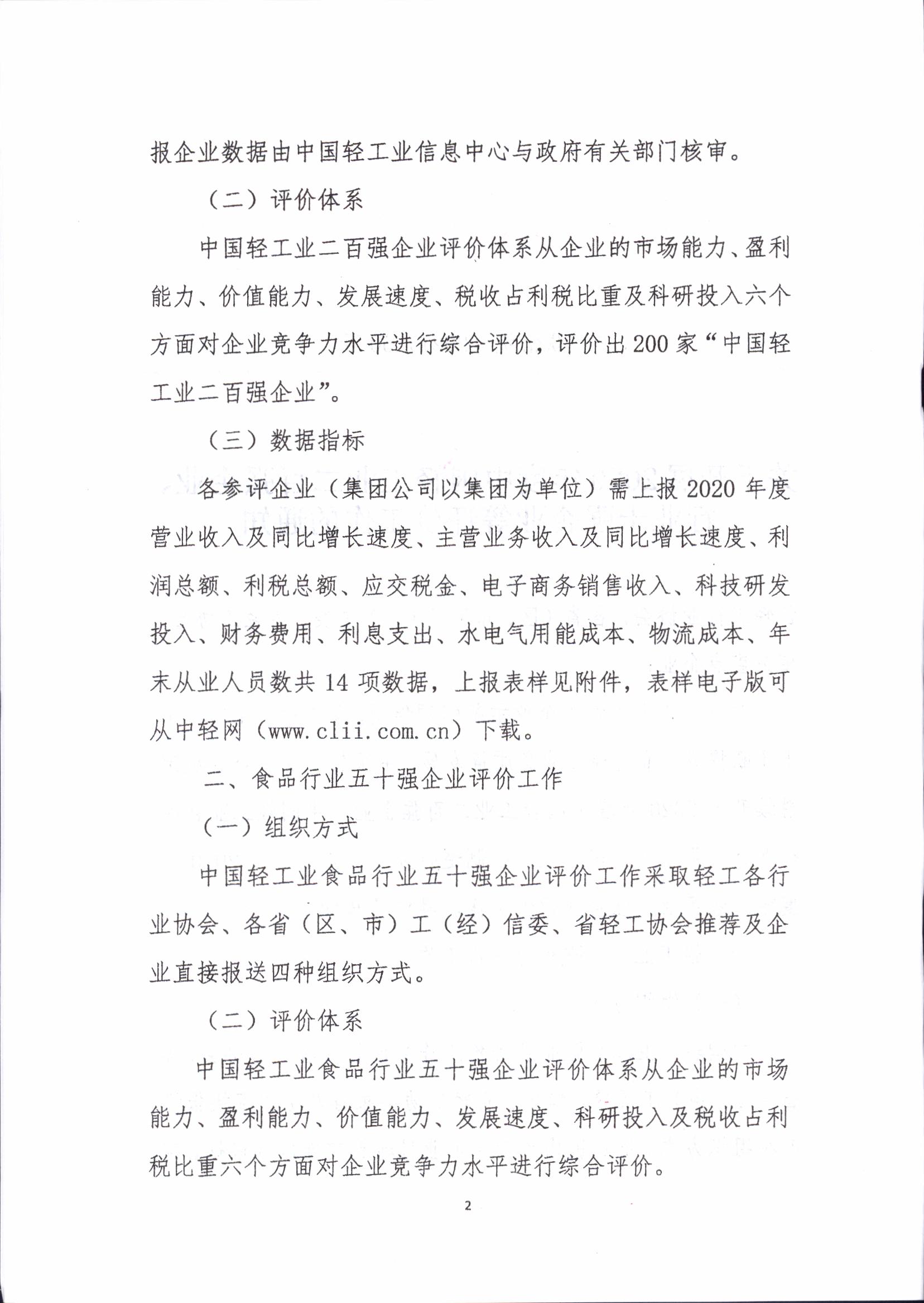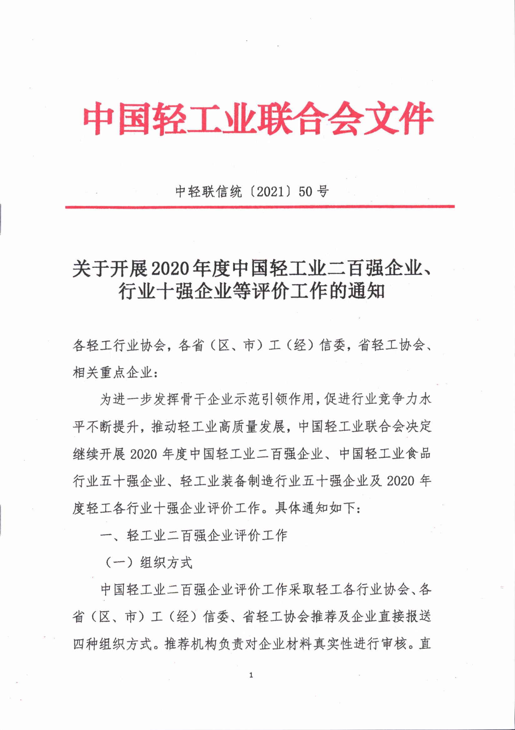 2020年度中国轻工业二百强企业、行业十强企业等评价工作启动