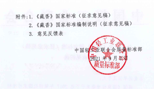 关于征求《藏香》国家标准(征求意见稿)意见的函