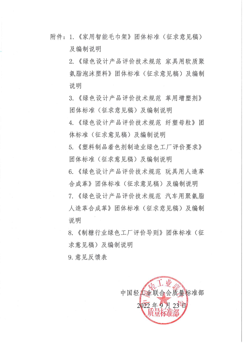 关于征求《家用智能毛巾架》等8项 团体标准(征求意见稿)意见的通知