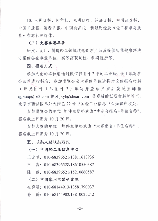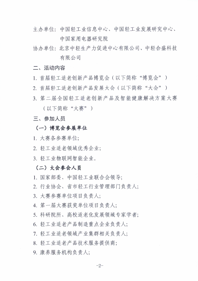 关于举办首届轻工适老创新产品博览会、轻工适老创新产品发展大会暨第二届全国轻工适老创新产品及智能健康解决方案大赛的通知