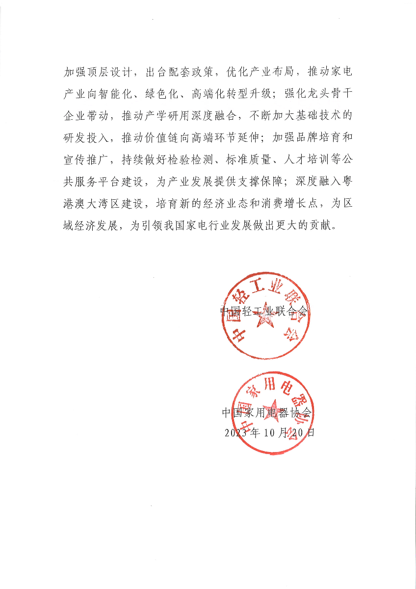 关于继续授予广东省佛山市顺德区“中国家电之都·顺德”暨北滘镇“中国家电制造业重镇·北滘”称号的通知