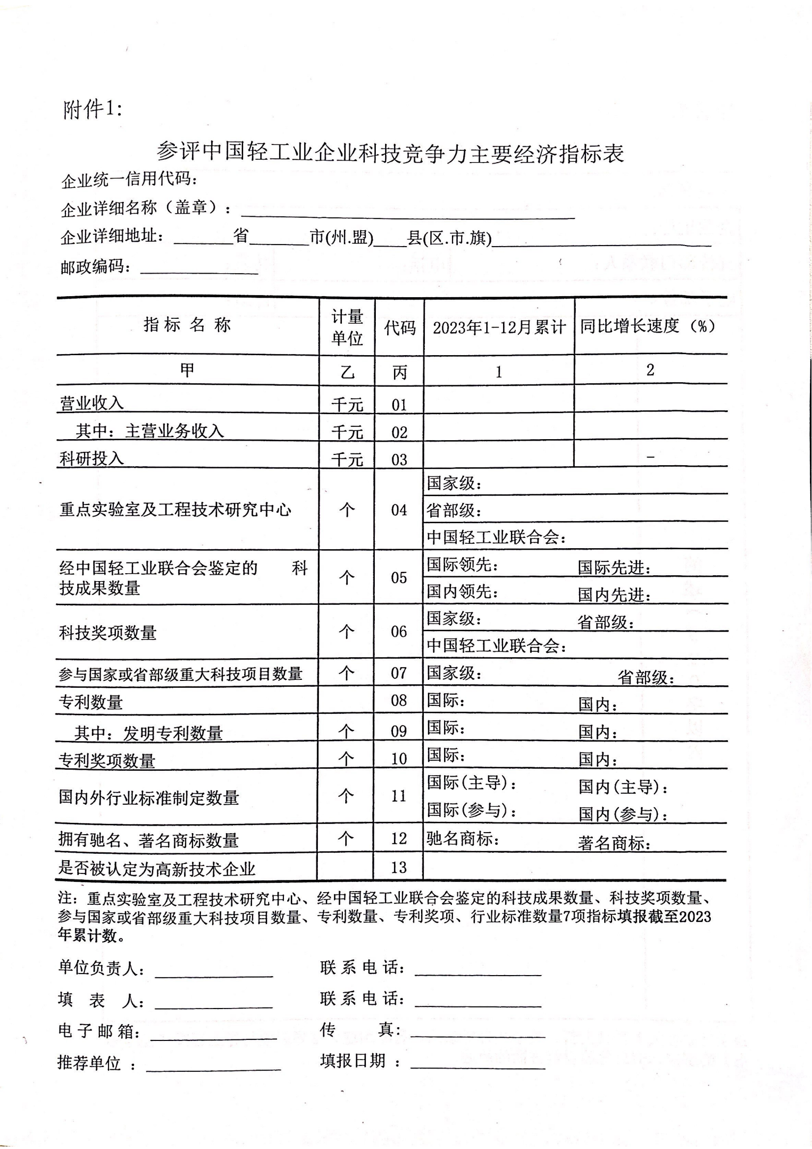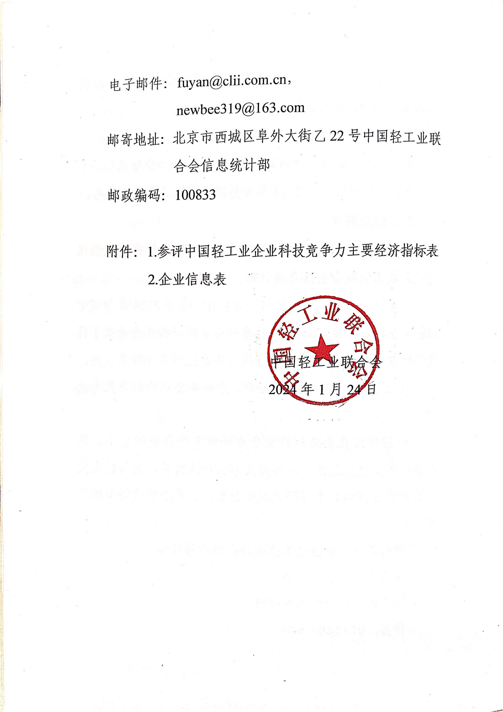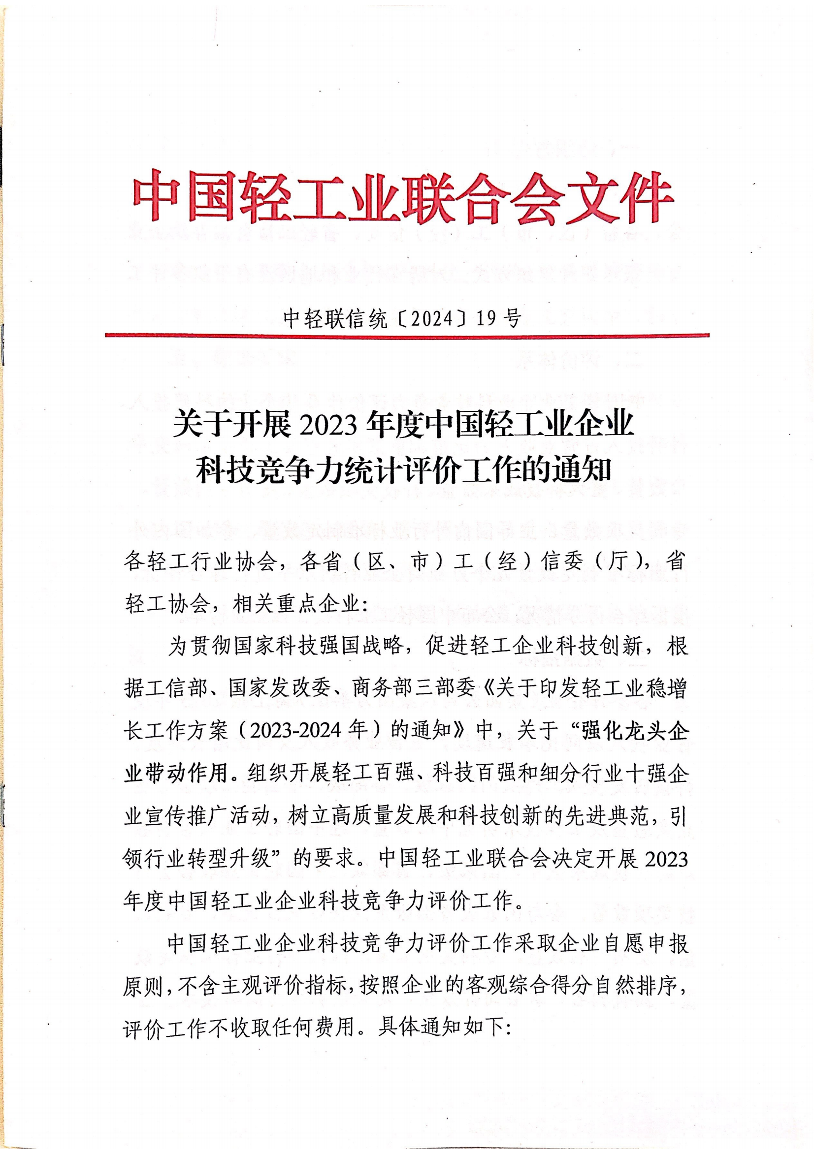 关于开展2023年度中国轻工业企业科技竞争力统计评价工作的通知