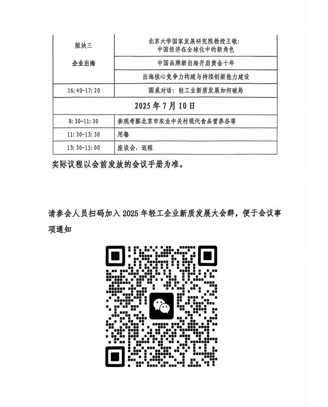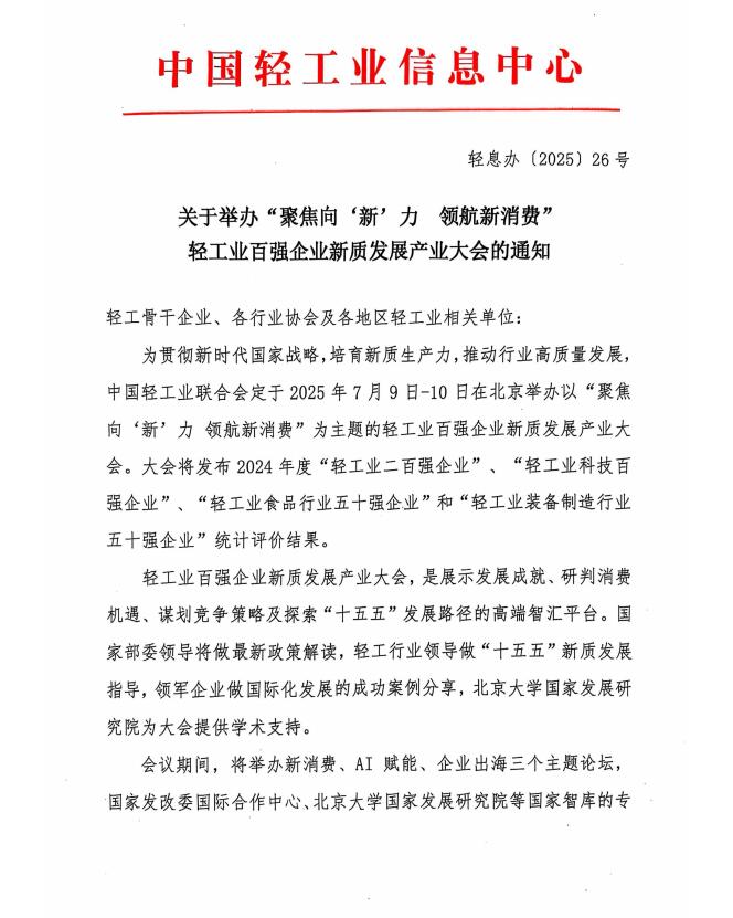 关于举办“聚焦向'新’力领航新消费”轻工业百强企业新质发展产业大会的通知