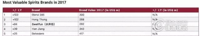 近期,Brand Finance发布了 2017年世界最有价值烈酒品牌榜单 (Most Valuable Spirits Brands in 2017),水井坊位列第44位,并成为上升速度最快的中国白酒品牌。