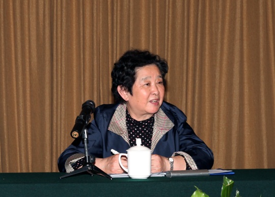 李玉娟会长在三届四次理事会(扩大)会上做工作报告。