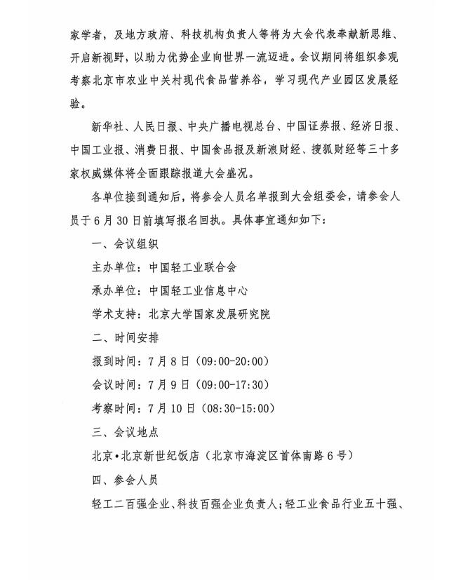 关于举办“聚焦向'新’力领航新消费”轻工业百强企业新质发展产业大会的通知