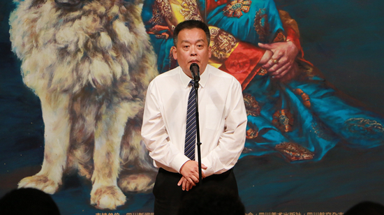 中国文联副主席、党组成员、书记处书记赵实宣布开幕,中国美协分党组书记、驻会副主席、秘书长徐里,四川省美术家协会主席梁时民,中国文化艺术促进会副会长王喆,合景泰富集团总经理蔡风佳,全美中国作家联谊会会长冰凌,四川省美协副主席、四川古玩收藏协会会长、著名油画家林跃分别在开幕式上致辞。