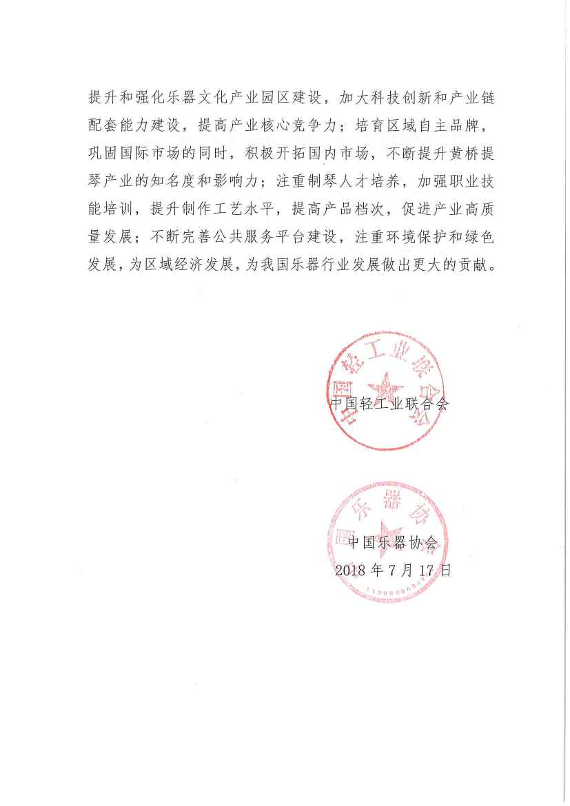 继续授予江苏省泰兴市黄桥镇中国提琴产业之都称号