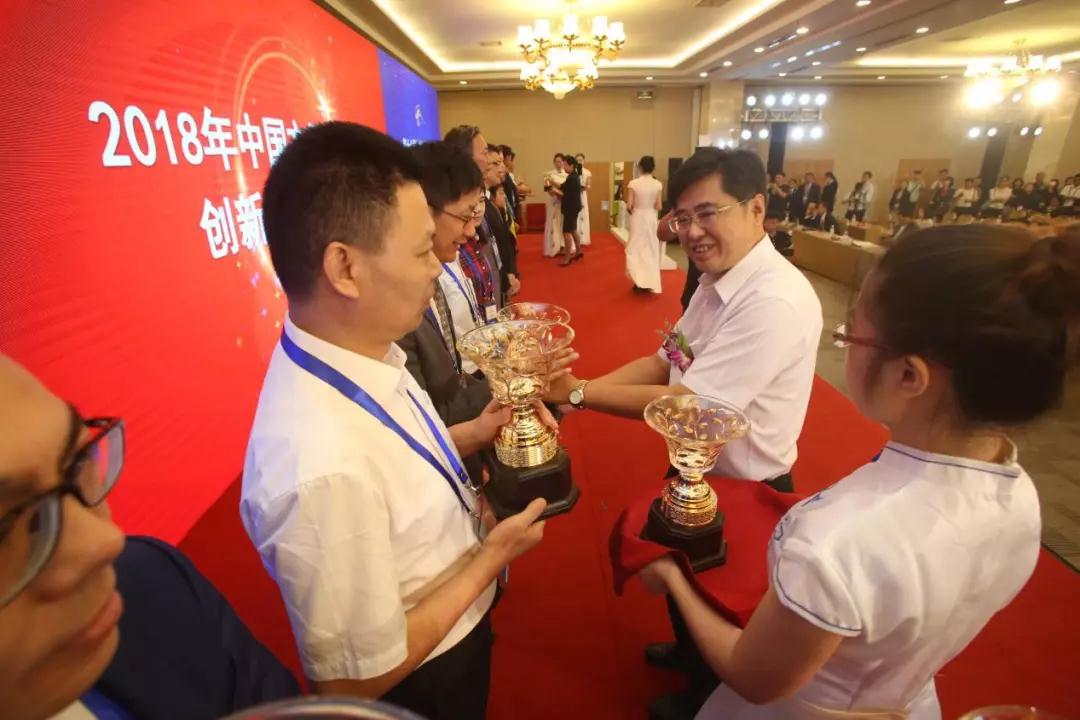 消费日报社党总支书记、中国食品报社长黄国胜为2018年中国方便食品行业创新产品获奖企业颁奖