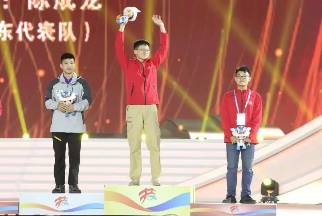 代表队选手李德鑫(中)获家具制作项目金牌。