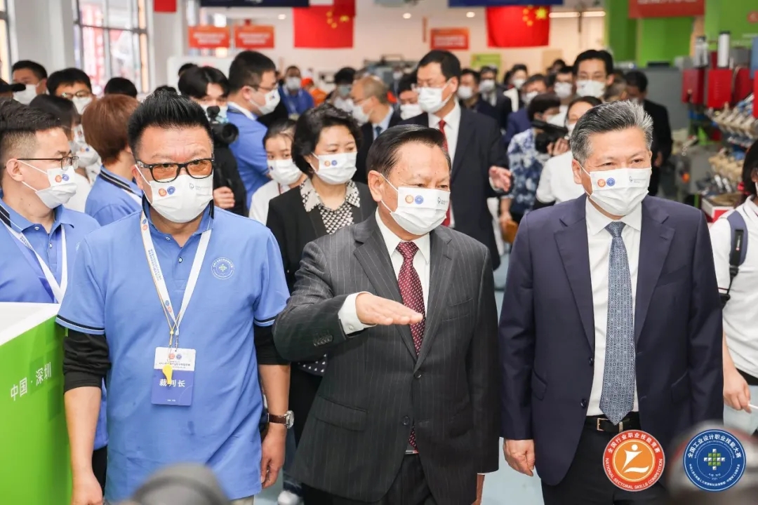 开幕式结束后,张崇和等领导先后来到鞋类、无损检测、陶瓷、首饰、家具的决赛现场,听取各赛项裁判长对参赛人数、比赛时长、比赛规程的介绍,详细了解了选手情况,张崇和指出,本次大赛采取“设计+制作”模式,打破了以往大赛“重设计轻应用”“重方案轻制造”“重外形轻结构”的桎梏,让选手产品呈现既有概念设计又具有实践意义。