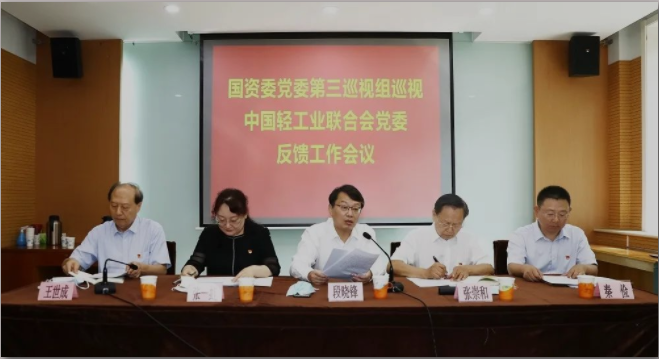 近日,国资委党委第三巡视组向 党委反馈巡视情况。在向中国轻工联党委主要负责人的反馈会议上,国资委党委第三巡视组组长段晓锋向党委书记、会长张崇和反馈了巡视情况,国资委党委巡视办张一虹主持会议,并对反馈意见整改提出明确要求。在向中国轻工联党委领导班子反馈巡视情况会议上,段晓锋组长反馈了巡视情况,张崇和同志就做好反馈意见整改工作作表态讲话。