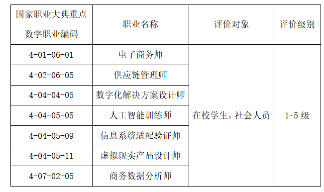 被批准成为轻工业首家数字职业能力评价直属基地。主要针对数字经济职业开展评价颁证,评价对象和级别主要包括: