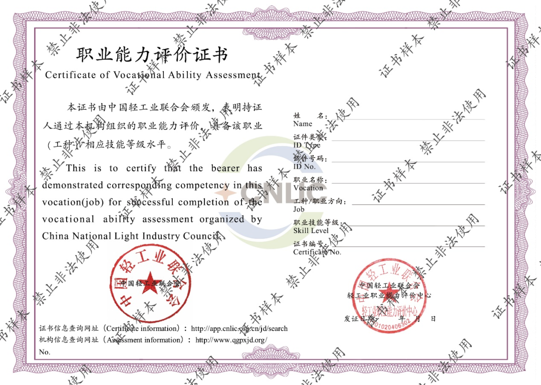 职业能力评价证书属于行业自主评价证书,可在全国范围内流通,通过对行业从业人员专业性和社会通用性进行评级,不断促进行业从业者水平优化提升。