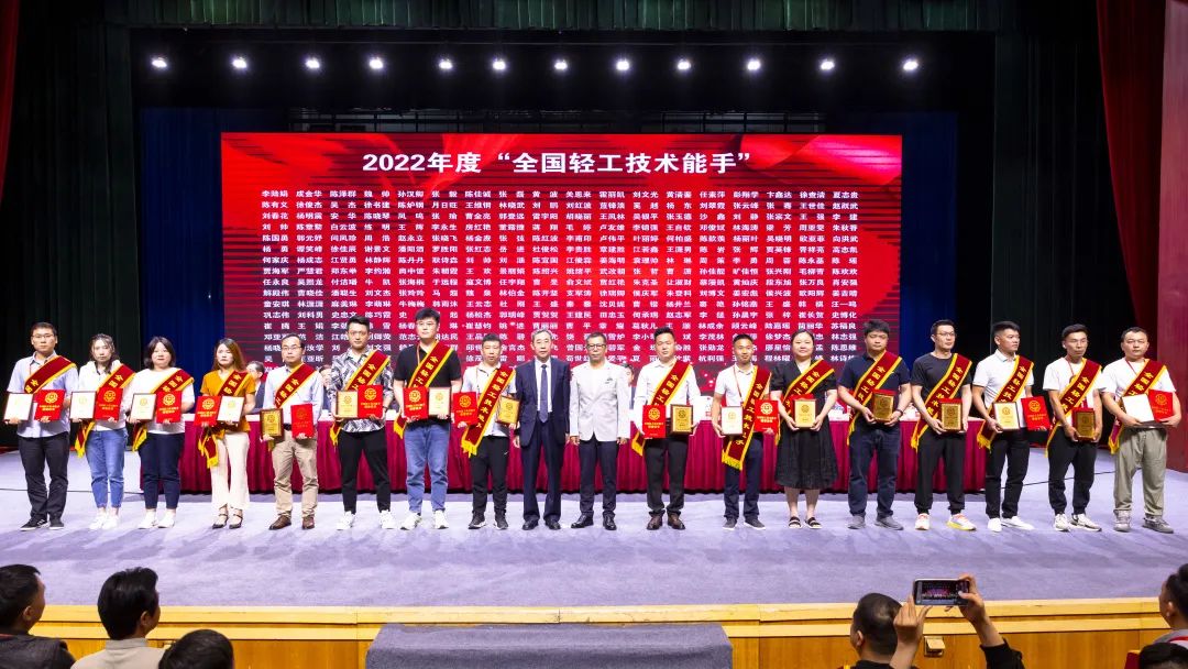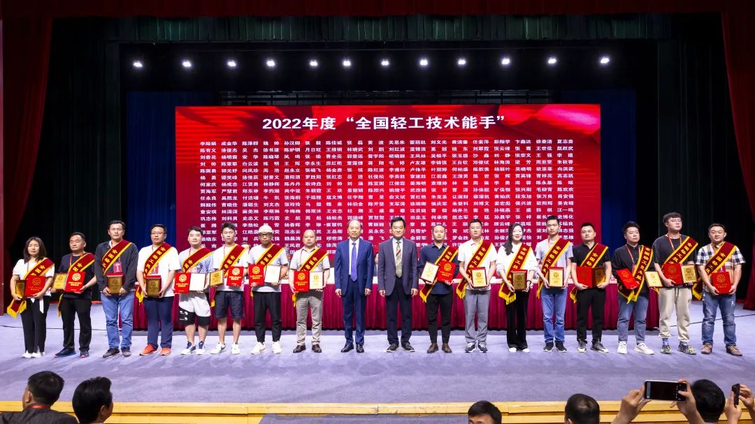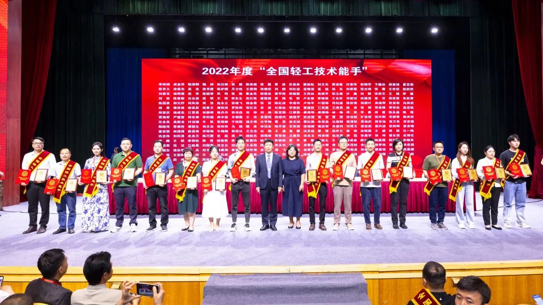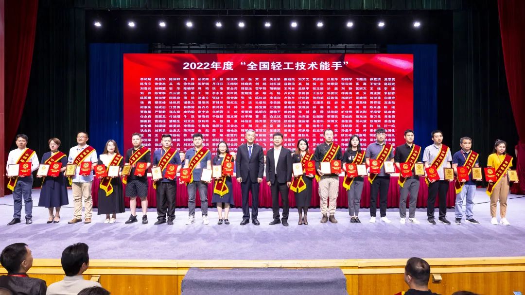大会为2022年 “全国五一劳动奖章”获得者举行了颁奖仪式;为获得2022年“全国轻工技术能手”荣誉称号的优秀选手和全国轻工第二届互联网营销师获奖选手进行表彰。
