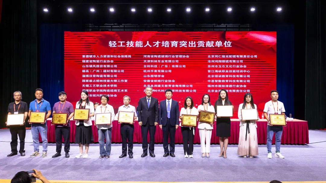 大会授予中国陶瓷工业协会等8家单位全国行业职业技能竞赛轻工大赛优秀组织奖;授予淄博市传统产业发展中心等15家单位全国行业职业技能竞赛轻工大赛突出贡献奖;授予景德镇市人力资源和社会保障局等25家单位轻工技能人才培育突出贡献奖。大会还对全国行业技能竞赛轻工大赛优秀裁判员进行表彰。