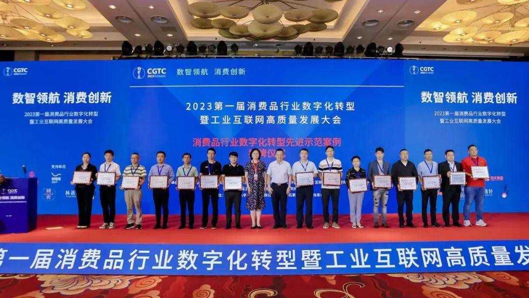 大会为2023年度消费品行业数字化转型先进示范案例和重点数字化标准参编单位颁发了牌证。