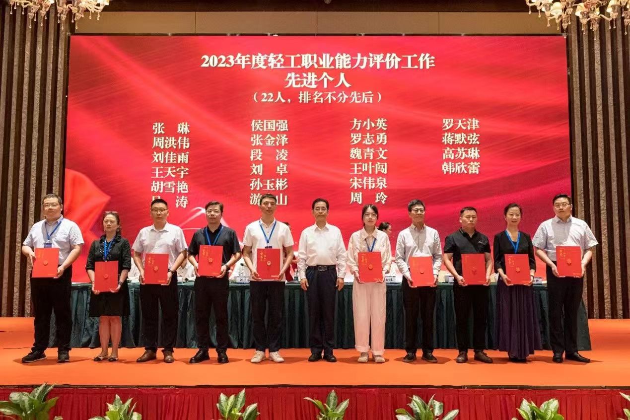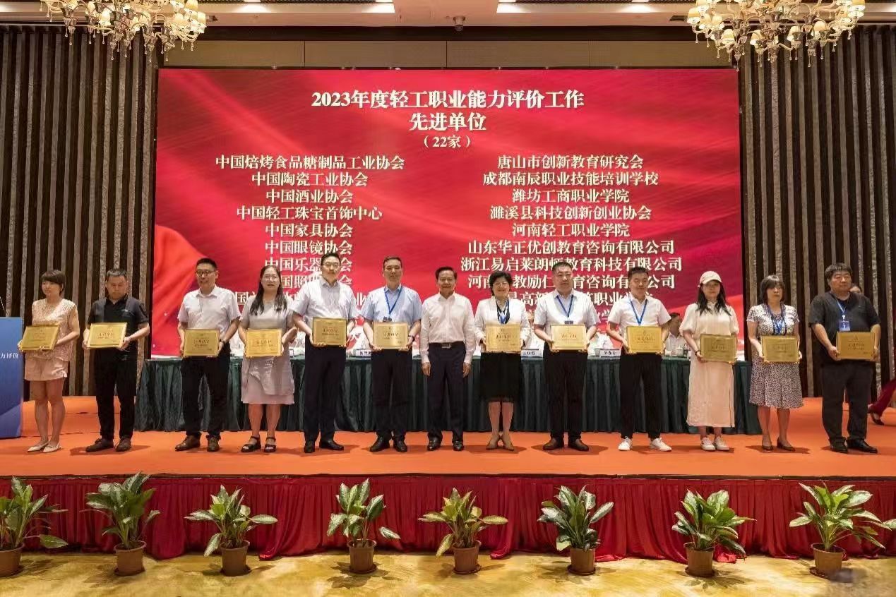 大会授予中国焙烤食品糖制品工业协会等22家单位“2023年度轻工职业能力评价工作先进单位”称号;授予中国陶瓷工业协会等3家单位“2021-2023年度轻工职业能力评价工作突出贡献单位”称号;授予张琳等22人“2023年度轻工职业能力评价工作先进个人”称号;授予李岳洋等22人“2023年度轻工职业能力评价优秀督导员”称号;授予刘橹等22人“2023年度轻工职业能力评价工作优秀考评员”称号。