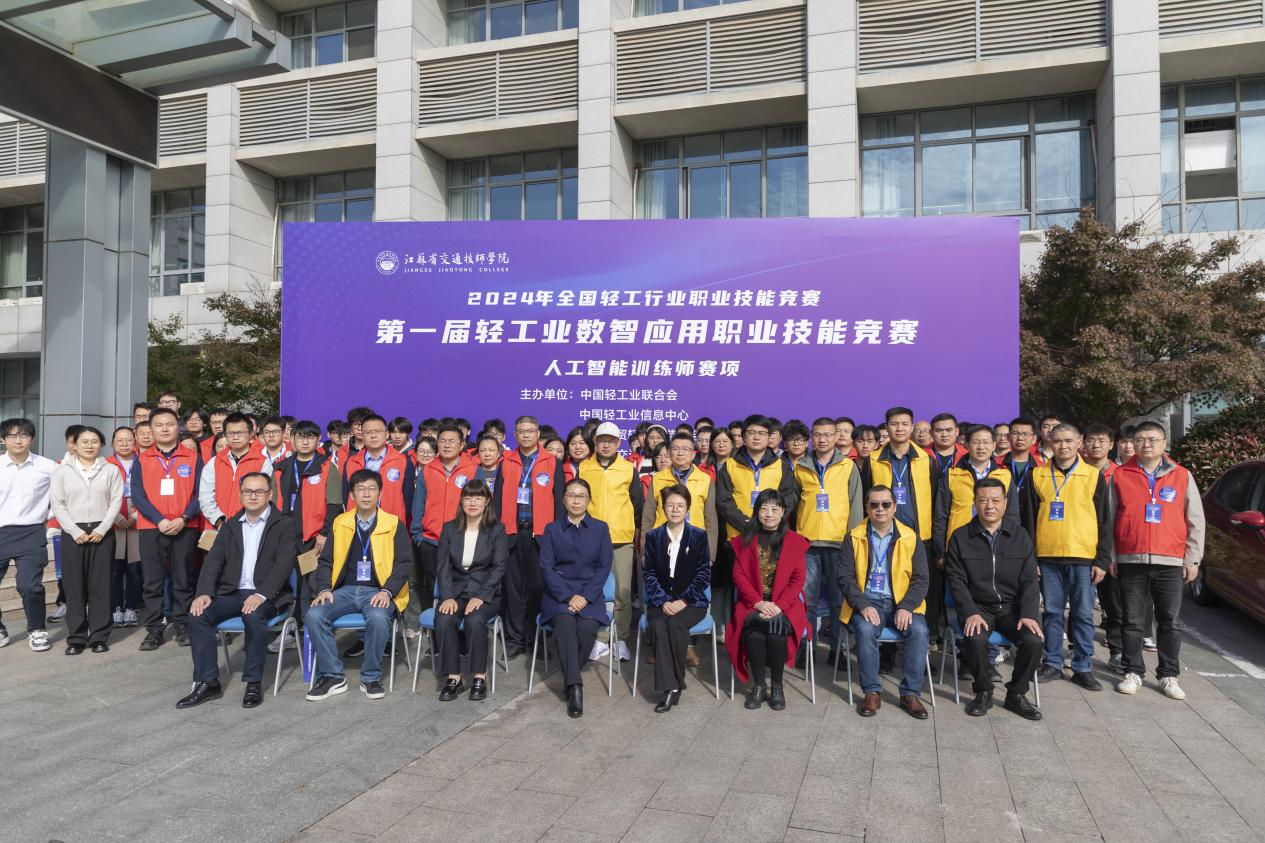 为贯彻落实党的二十大关于深入实施人才强国的战略部署,积极响应国家数字化战略,聚焦数智应用行业发展趋势,11月10日,由 、 、中国财贸轻纺烟草工会全国委员会共同主办,江苏省交通技师学院承办的“2024 年全国 职业技能竞赛—第一届轻工业数智应用职业技能竞赛人工智能训练师赛项决赛”在镇江成功举办。 手工艺产业部副主任、 副主任、轻工业职业能力评价中心竞赛处处长蒋雯,江苏省交通技师学院副院长曹妍,江苏省轻工业联合会办公室主任姜燕, 网络服务处处长张伟等相关领导参加开闭幕式并全程观赛。