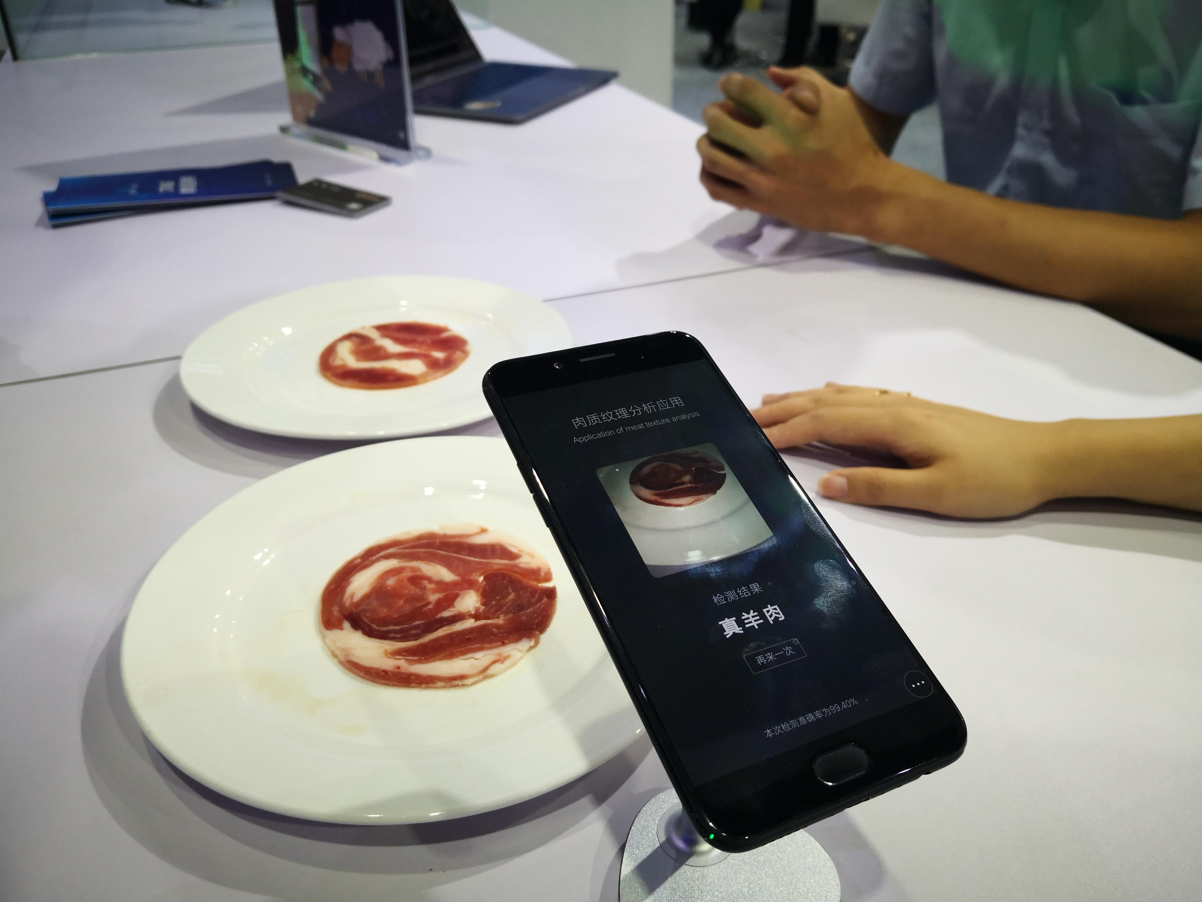“挂羊头卖狗肉”的行为自古便有,而现在,只需一台安装了“肉质纹理技术”APP的手机,即可快速完成对真假羊肉的辨别。此次展示的肉质纹理分析技术采用“大数据管理”技术,通过采集大量肉类纹理数据,深度训练卷积神经网络来构建纹理分类模型,引入LBP(局部二值模式)纹理表征方式获得纹理特征,得到可靠的牛羊肉鉴定模型,再将这些信息记录到数据库,从而建立庞大的纹理识别数据网络。当有新的肉质纹理图形输入时,数据库就会根据这些信息去比对查询,从而得到基于大数据的可靠鉴定结果。