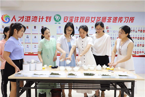 作为全国非遗茶文化领域第一家以女性为主体的传习平台,在成立之初便被授予安溪县“乡村振兴妇女创业人才孵化基地”。平台创始人何环珠坚持以传播安溪铁观音非物质文化技艺为特色,通过“师带徒”机制,自成立以来,重点开展了三个方面的工作:一是积极筛选和培育女性非遗技艺传承人,二是“以赛促进学,以赛促研”,大力培养茶产业振兴复合型人才,三是积极促进茶文化传播的国际化。