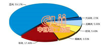 图1 2014年1~6月我国陶瓷砖累计出口额各大洲占比情况