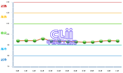 图1 2012年10月~2013年11月家具行业主营业务收入景气指数变化态势