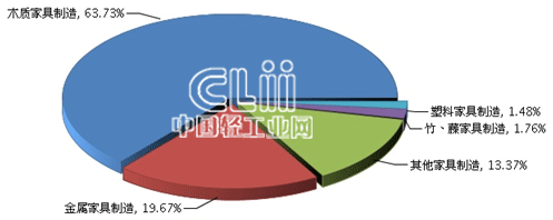 图4 2013年家具子行业规模以上企业累计主营业务收入占比情况