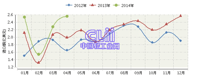 根据海关总署发布数据:2014年1~4月,全国家具行业累计完成进口额8.92亿美元,同比增长18.65%。其中:4月份完成进口额2.56亿美元,同比增长27.91%。