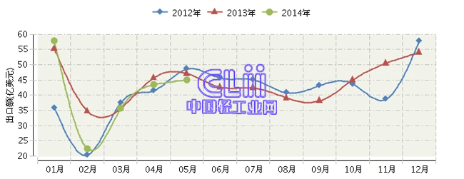 2014年全国家具行业月度出口额及同比