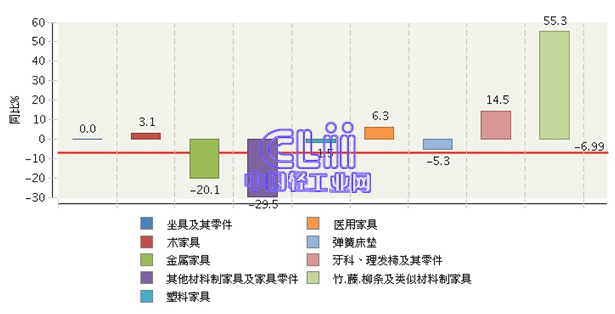 图5 2014年1~4月家具行业主要商品累计出口值增速情况