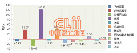 图2 2014年1~9月我国陶瓷砖累计出口额主要贸易国同比增长情况